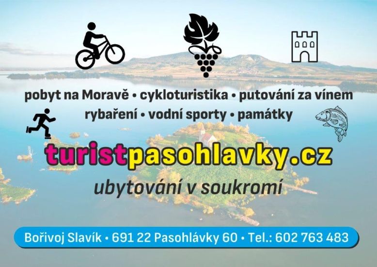 Spoustu pěkných cyklotras kolem tří nádrží Nové Mlýny (Pasohlávská, Věstonická a Novomlýnská) a 3 řek (Dyje, Jihlava a Svratka). Od pohodových tras až po trochu těžší, ale vždy s pohledem na Pálavu, vinohrady a romantickou přírodu. ** V turistické sezóně**: výlety lodí po horní nádrži s občerstvením a možnou konzumací vína. S nástupním místem v Pasohlávkách, nebo v kempu Merkur. (lze si vybrat délku trasy) Nejdelší trasa začíná v kempu Merkur a končí příjezdem zpět do kempu. Více na: www.plavbypalava.cz Posezení a degustaci ve sklípku si můžete zarezervovat u Kratochvílů na www.ukratochvilu.cz