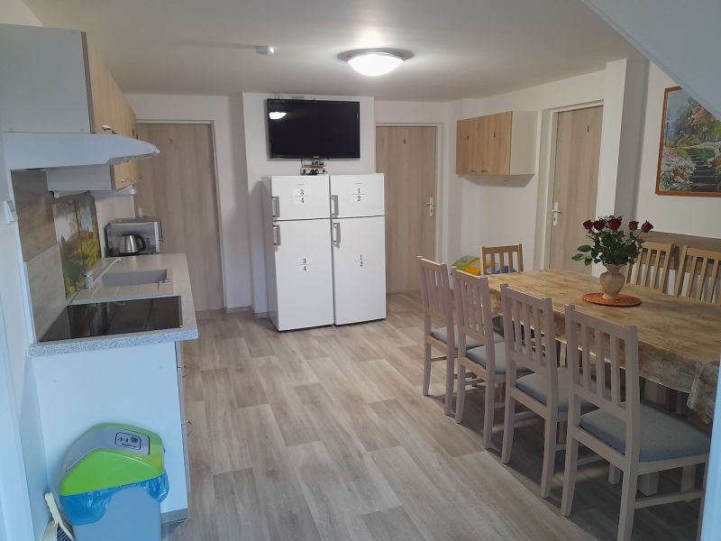 Možnost vlastního vaření. K dispozici: vybavená kuchyň, skříňky na potraviny, mikrovlnka, var. konvice, televize, rádio, pračka, lednice s mrazničkou pro každý pokoj, možnost společného posezení u jednoho stolu.